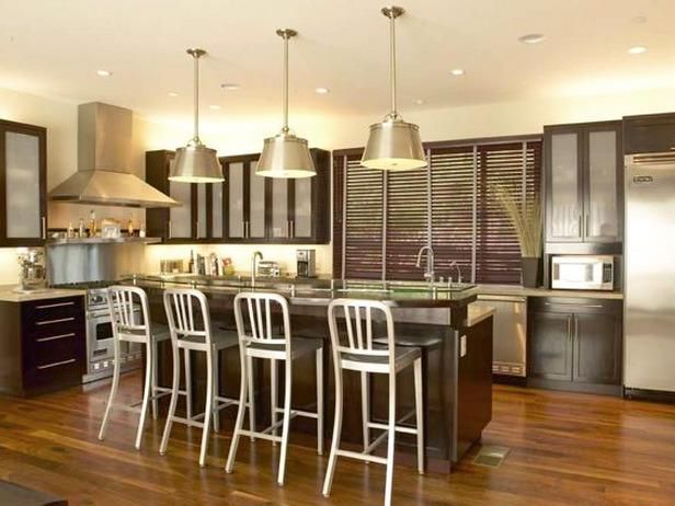 Vale, no hace falta que recalquemos que la zona de manejo y preparación de la comida es la más importante, pero en la iluminación de tu cocina también puede haber otras… ¿o no? Por ejemplo, la típica península o, en hogares más amplios, la isla central. En tales lugares, lo mejor es la focalización de la luz desde arriba, con apliques dirigibles (sin descartar que las campanas extractoras pueden disponer de lámpara propia). Y, por extensión, podríamos seguir incluso hasta las zonas más oscuras del hábitat. Al respecto, y aunque a alguno le parezca extraño, se pueden colocar halógenos dentro de los armarios, o también en los cajones o columnas extraíbles, los cuales se encienden automáticamente con la apertura de la puerta.