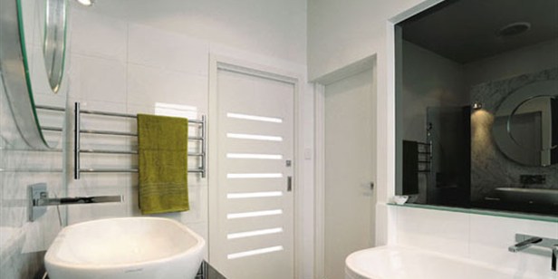 baño minimalista claro y luminoso